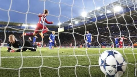 ศึกการแข่งขันฟุตบอล ยูฟ่า แชมเปี้ยนส์ ลีก รอบควอร์เตอร์ไฟนอล นัดแรก ณ สนาม แวงซองต์ กัลเดรอน – แอตเลติโก มาดริด 1 (กรีซัมนน์ จุดโทษ 28) เลสเตอร์ ซิตี้ 0